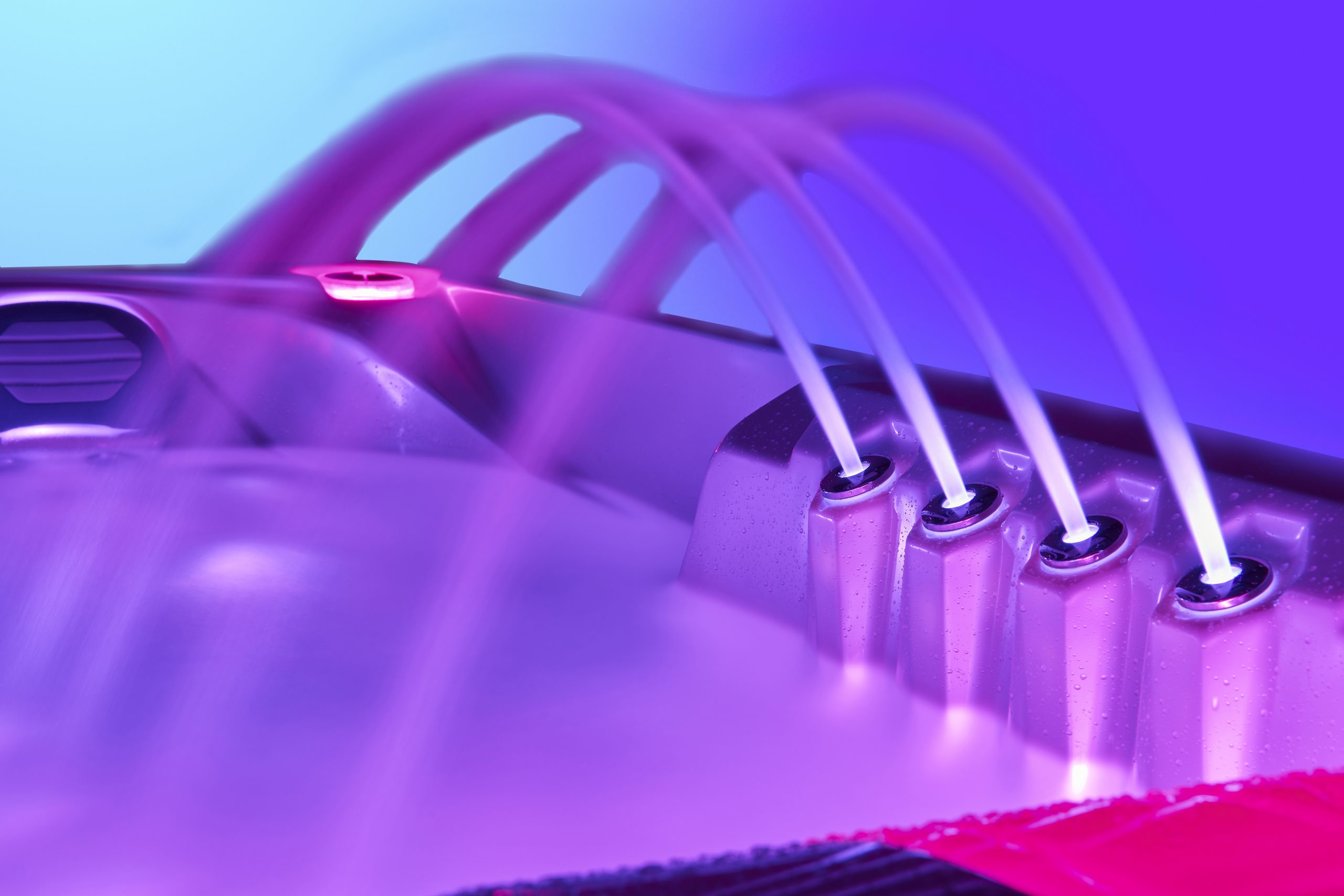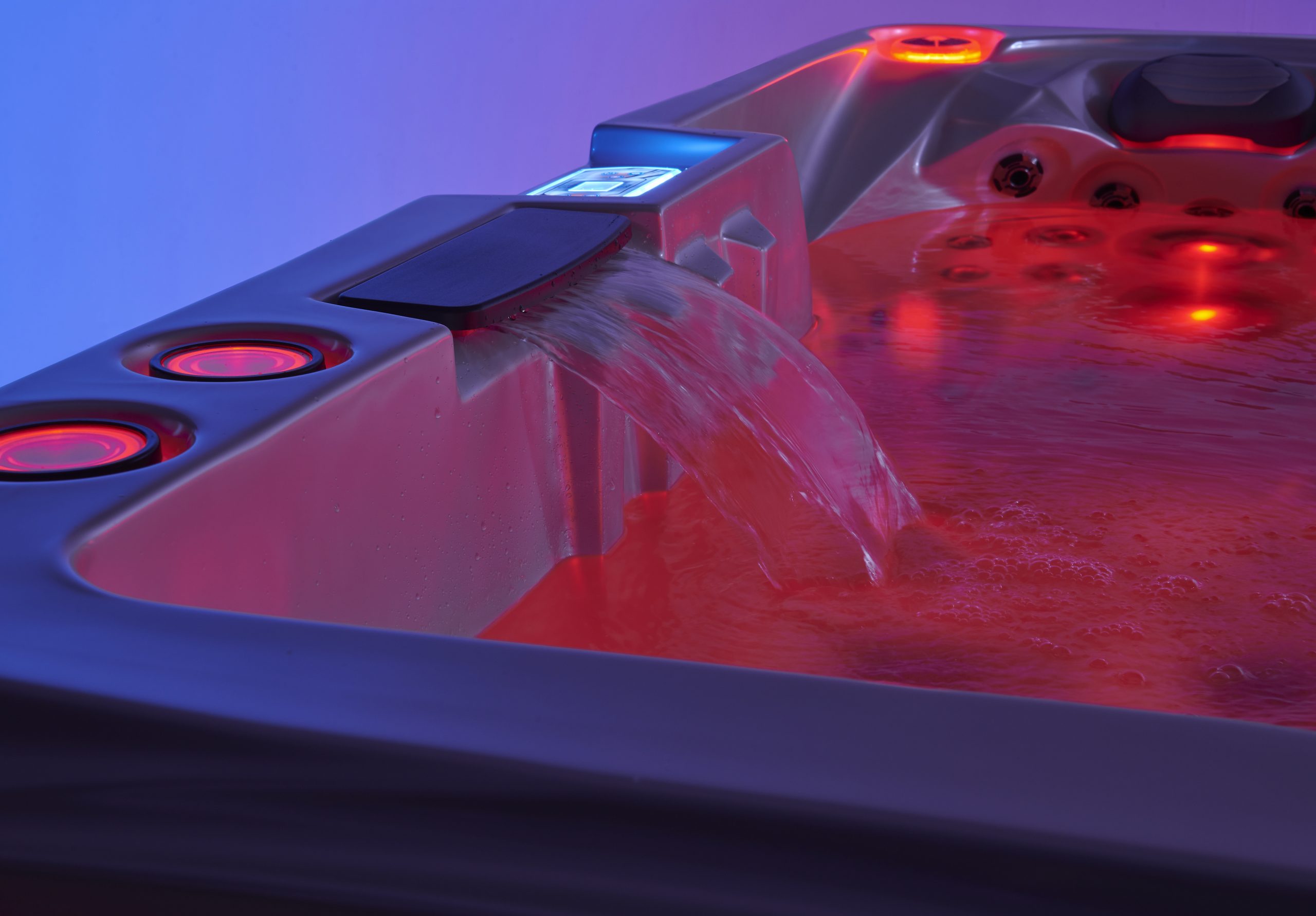 Nuestro Sistema de Luz cuenta con 7 colores diferentes y está controlado por el sistema BALBOA. Cada uno de nuestros SPA está equipado con al menos 15 luces LED y una gran luz subacuática. Además, tiene la opción de incluir luces de esquina para zócalos exteriores y tiras de luces para zócalos. Se pueden agregar luces LED a cada jet, jet de burbujas de aire y válvula de control. Además, ofrecemos cascadas LED y fuentes LED que crean un ambiente encantador, permitiéndote sumergirte en un paraíso de ensueño.