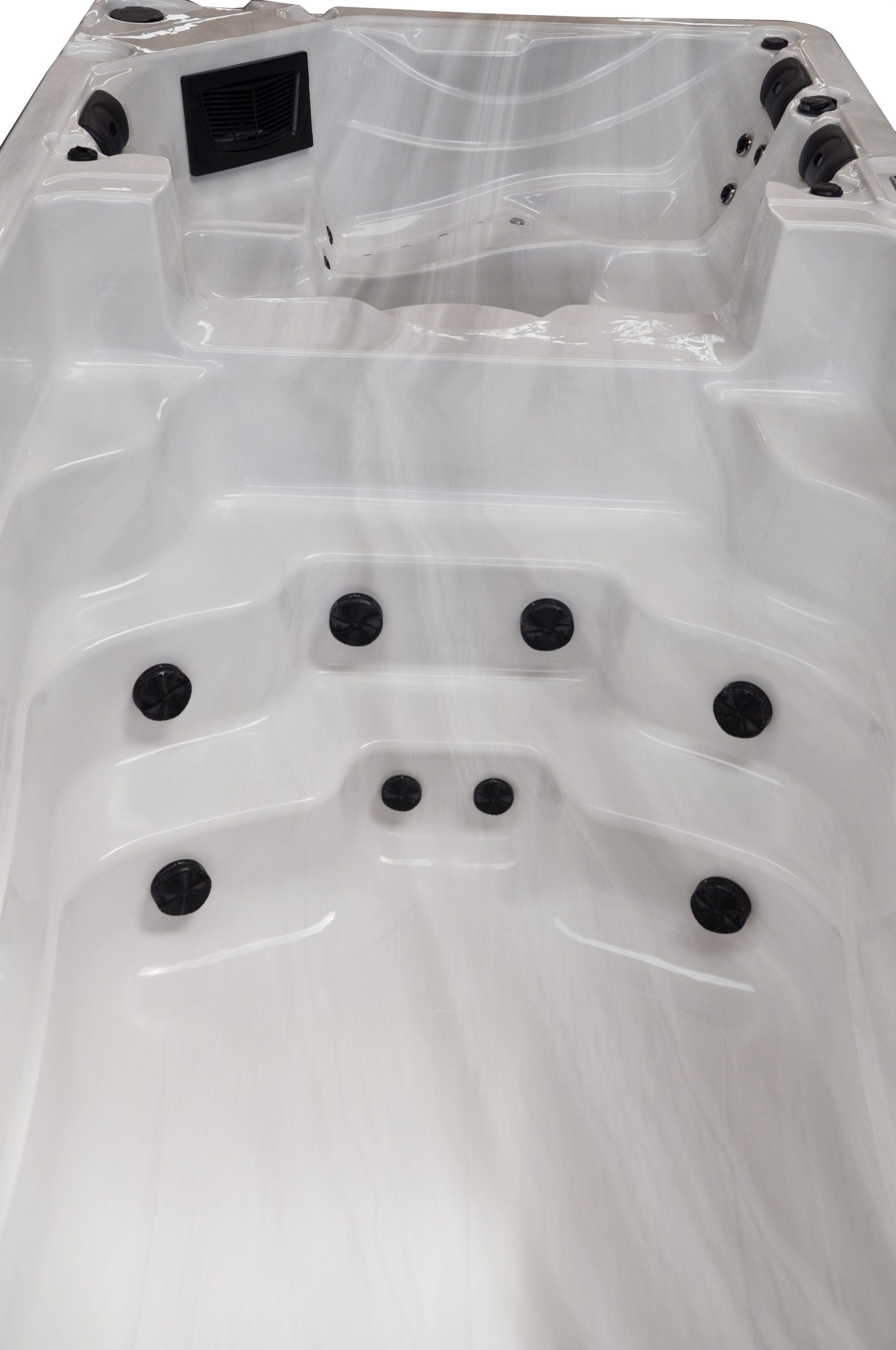 Nuestros spas están diseñados para combinar estilo, reducción del estrés y beneficios terapéuticos. No necesitarás cambiar constantemente de posición para encontrar la máxima comodidad, gracias a la gran cantidad de jets terapéuticos disponibles. Todos estos jets están interconectados a través de un sistema de fontanería que garantiza un flujo máximo de agua mediante mangueras y tuberías grandes. Las conexiones seguras entre tuberías y jets están garantizadas con nuestros confiables accesorios de agarre seguro. Nuestros jets para el cuello se centran específicamente en el cuello y los hombros, los jets de masaje brindan alivio a los hombros y la parte baja de la espalda, los jets para el túnel carpiano alivian la tensión en las manos y los dedos, mientras que los jets jumbo, ubicados en la zona de los pies, ofrecen masaje de pies.